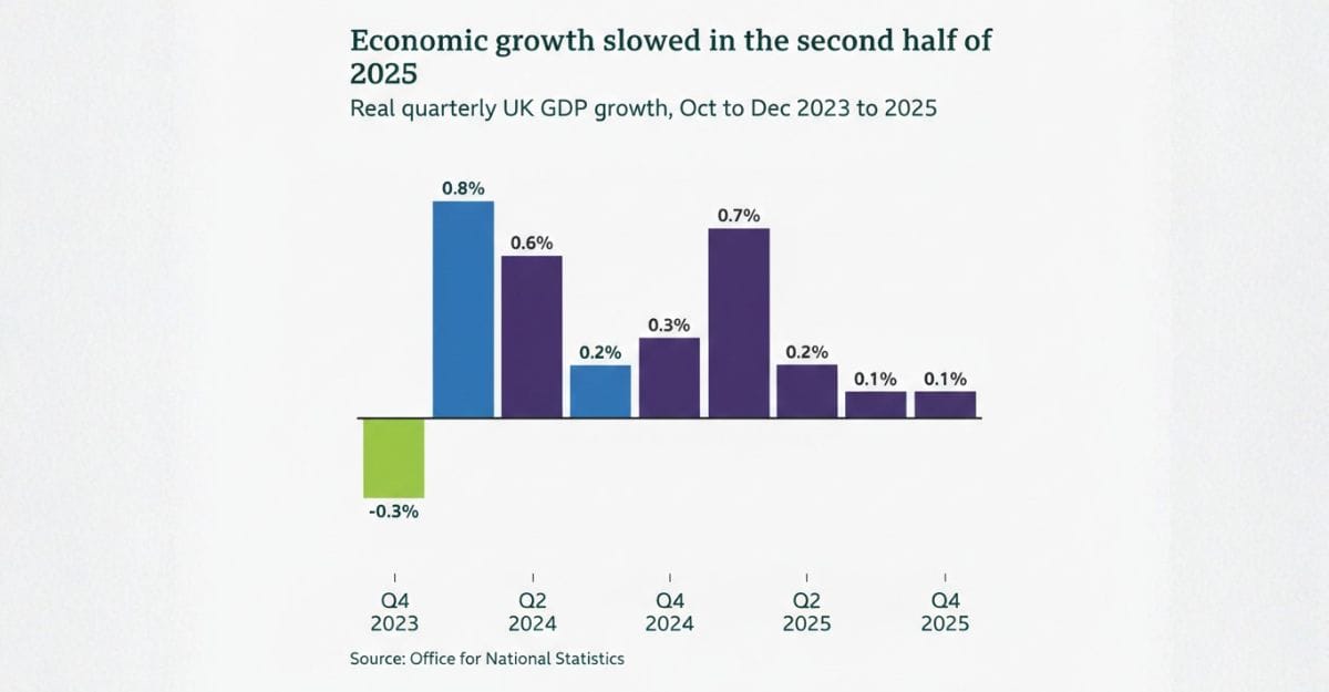 The Office for National Statistics says GDP growth was 0.1 per cent in the final quarter of 2025, with services flat, construction down and business investment falling. For Surrey households and employers, it’s a cautious backdrop for hiring, spending and public budgets.